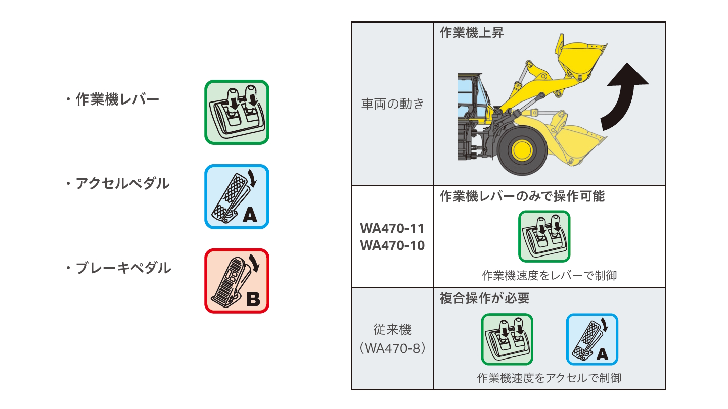 ※WA470-10比、Pモード、ロード&キャリーおよびVシェープローディング時