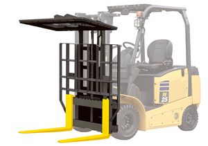 フォークが左右にスライドするので、車体を動かすことなく積荷を左右へ動かすことができ、荷の幅寄せなど、簡単に効率よく作業することができます。