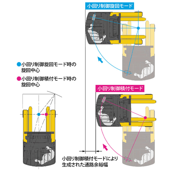 小回り制御機能の採用により、旋回時に余裕が大きくとれるため、切り返しの少ない作業が可能