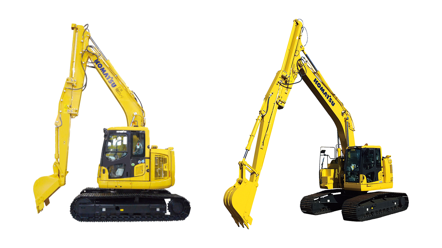 河川の浚渫や管工事でより深く、より遠くに届き、作業効率の向上に貢献します。狭い建設現場や機械の大きさに制限を受ける現場で、1ランク上の作業範囲を確保します。