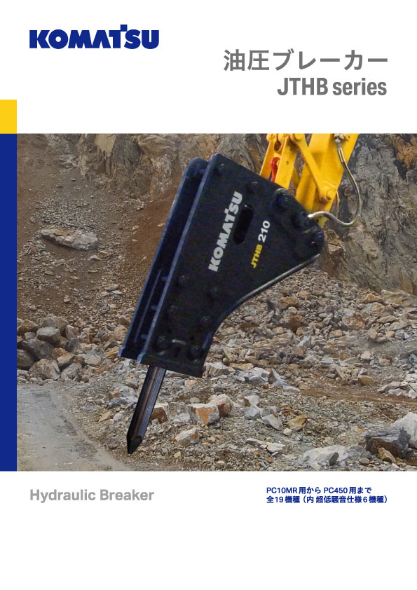 コマツ超低騒音油圧ブレーカーSシリーズは、従来機(JTHB 08~JTHB455)本来の特徴である「シンプルな構造&ハイパワー」に加え、振動・騒音を抑える各種装置を備えた環境にもオペレータにも油圧ショベルにも優しいブレーカーです。