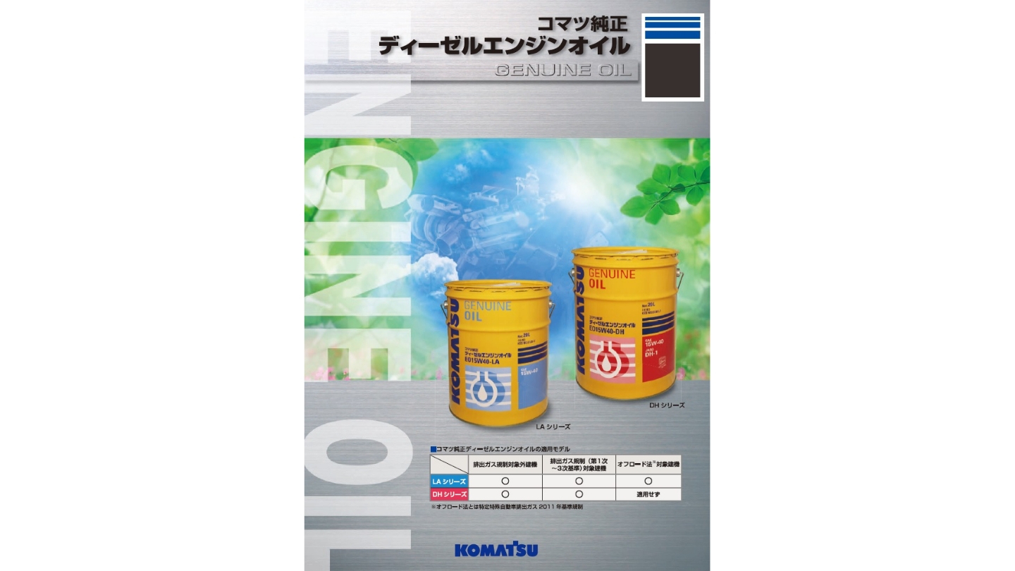 ①建設機械へのエンジン排出ガス規制は段階的に強化が進んでいます。ディーゼルエンジン製造メーカとして排気ガス規制エンジンにベストマッチするよう開発したエンジンオイル。