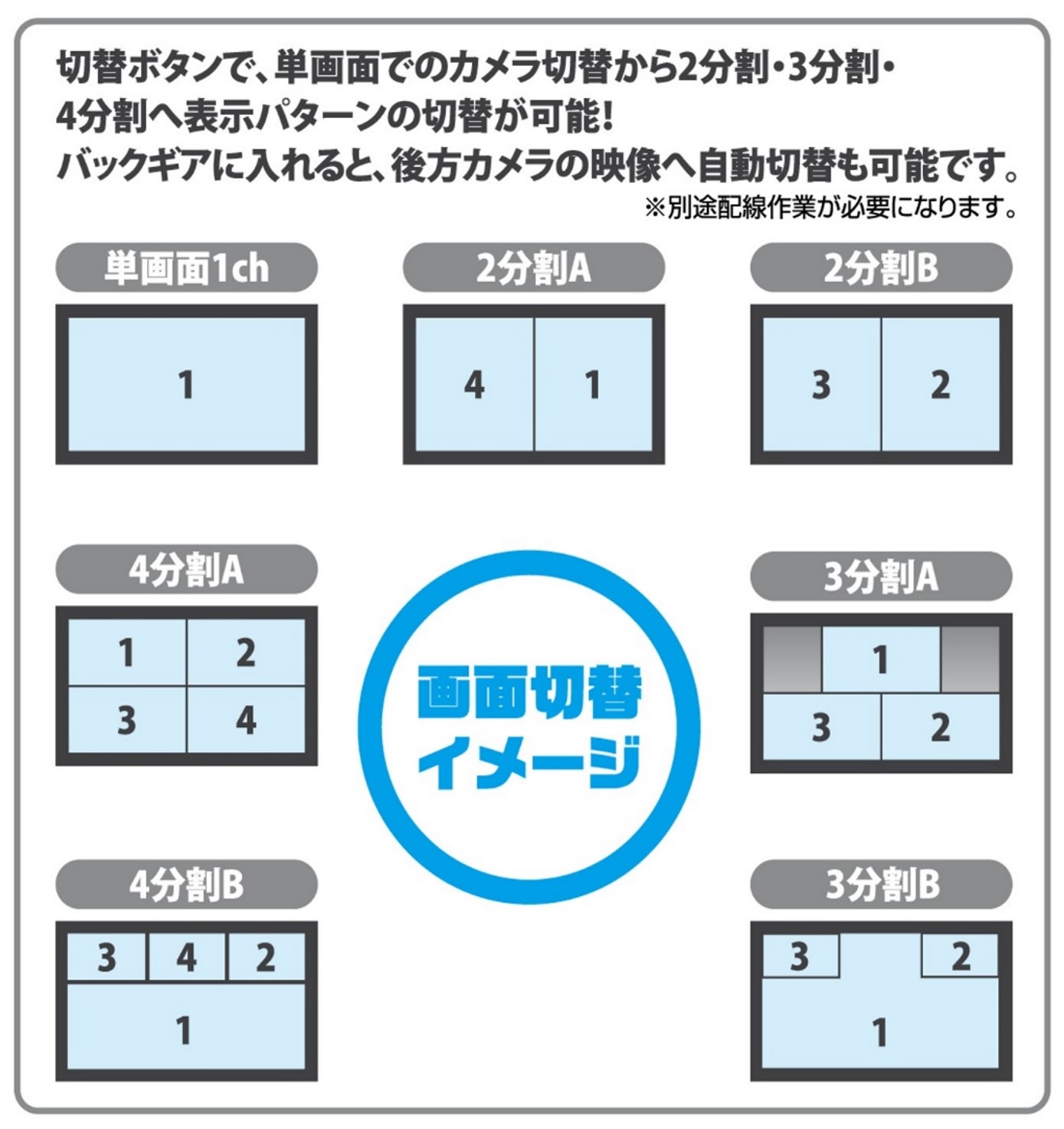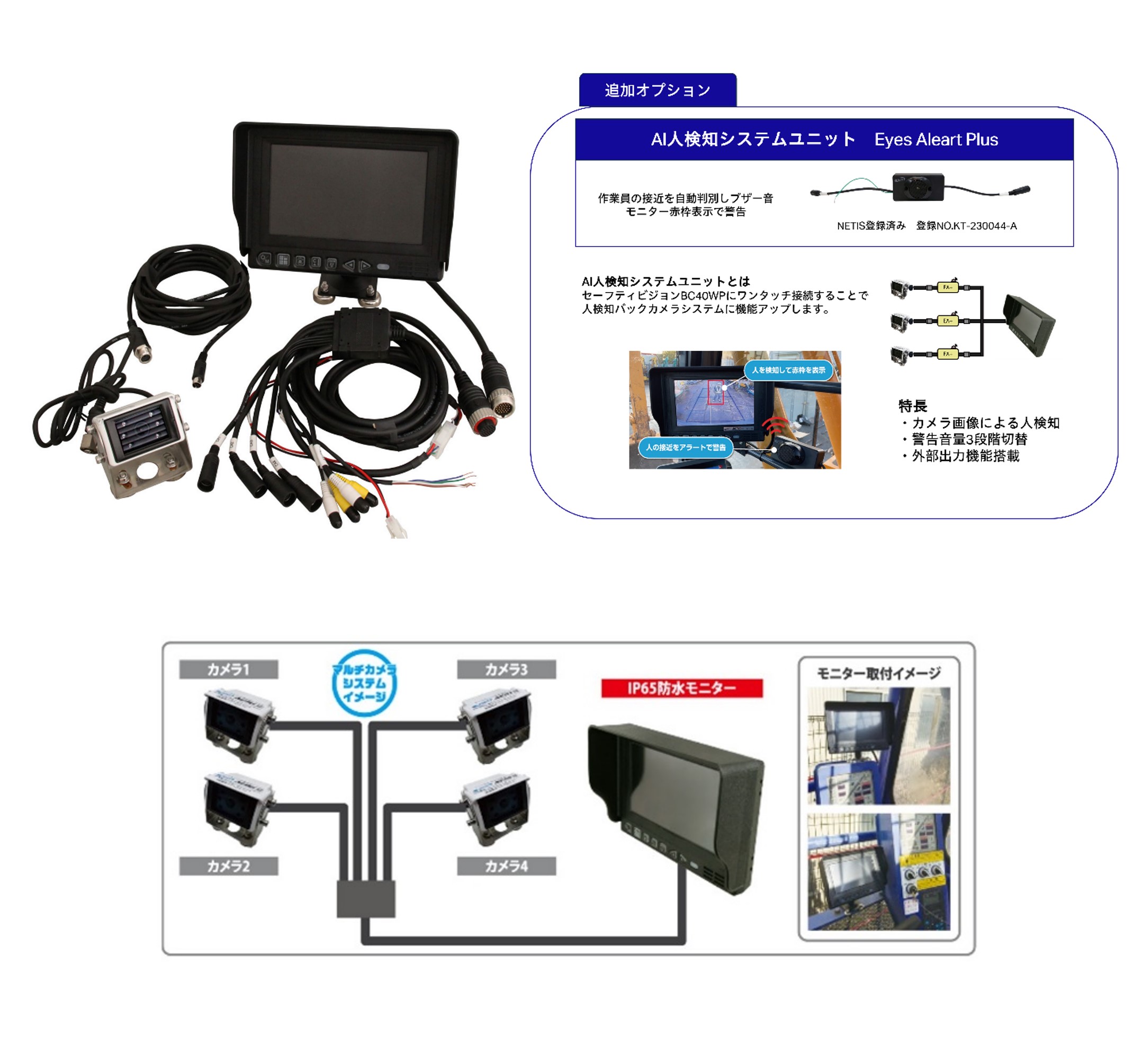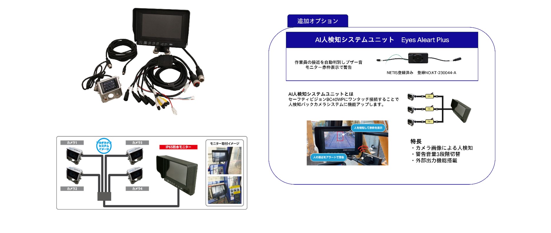 バックカメラシステムです。 今まで確認が難しかった作業中の後方確認を、