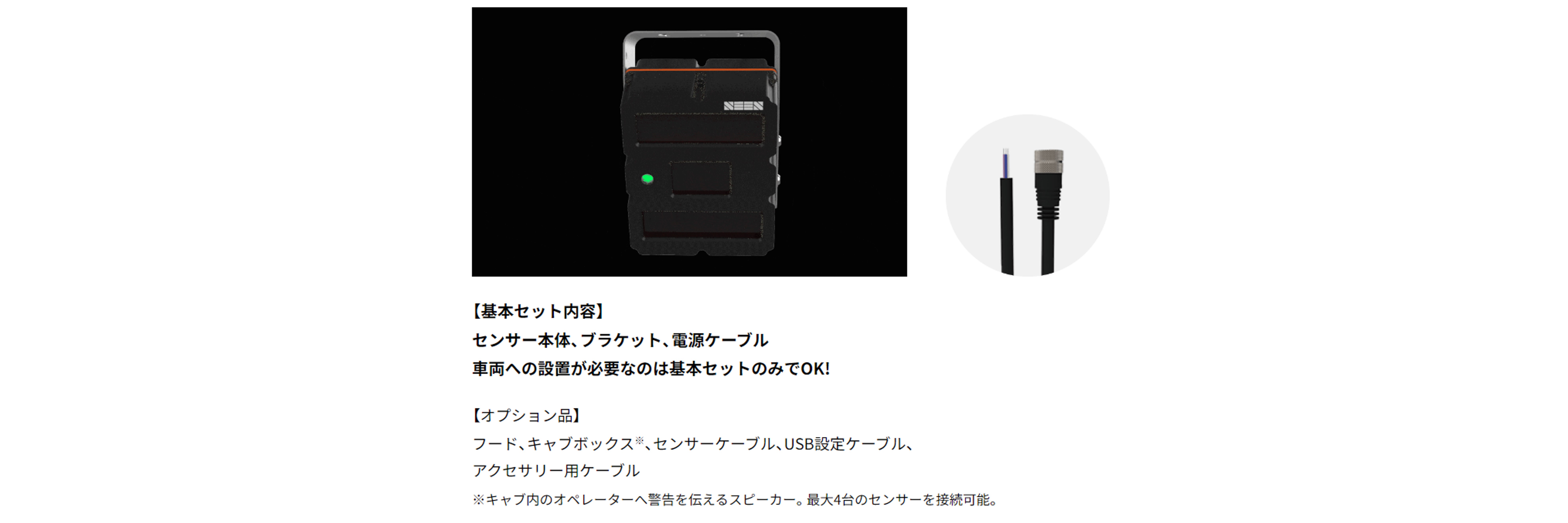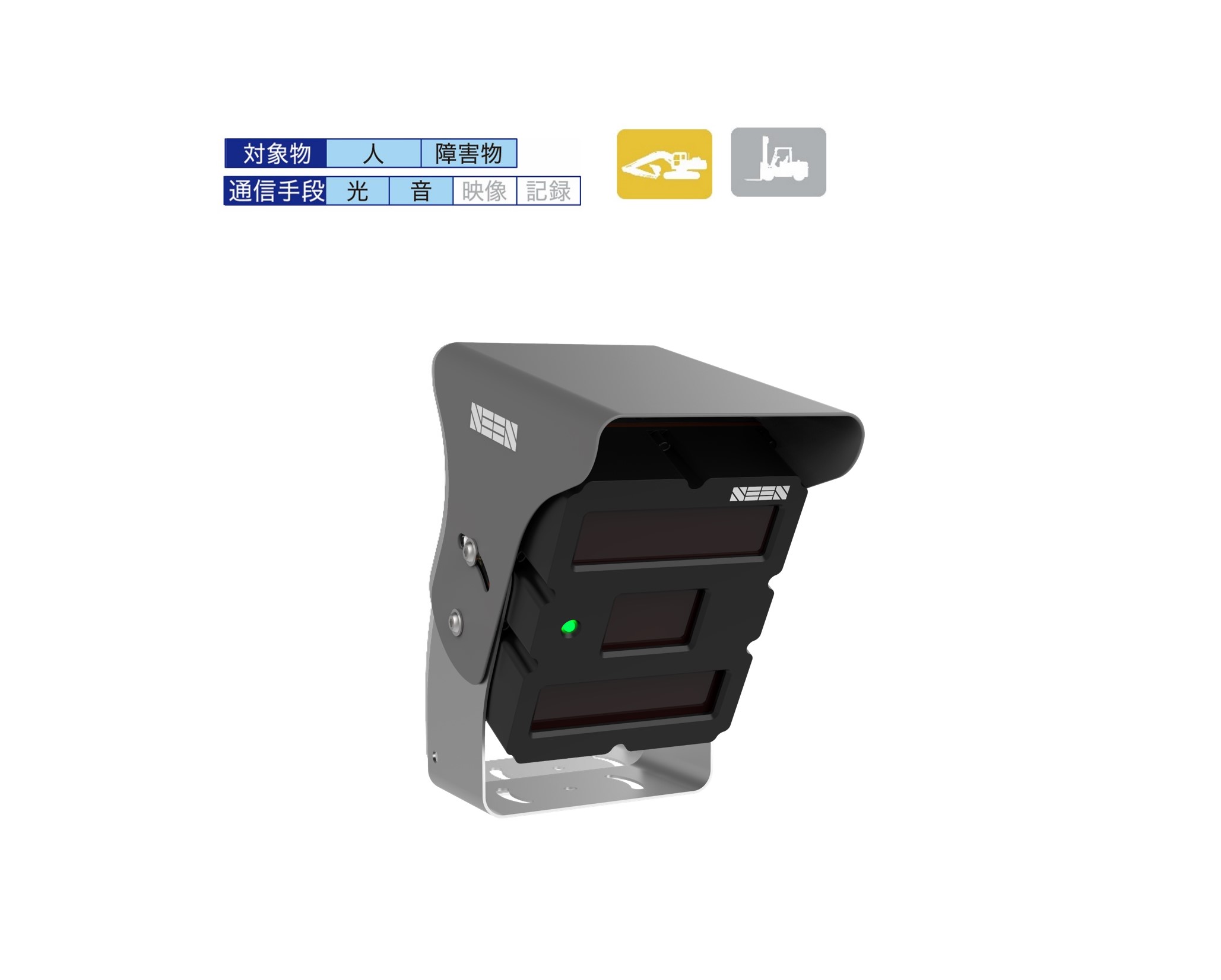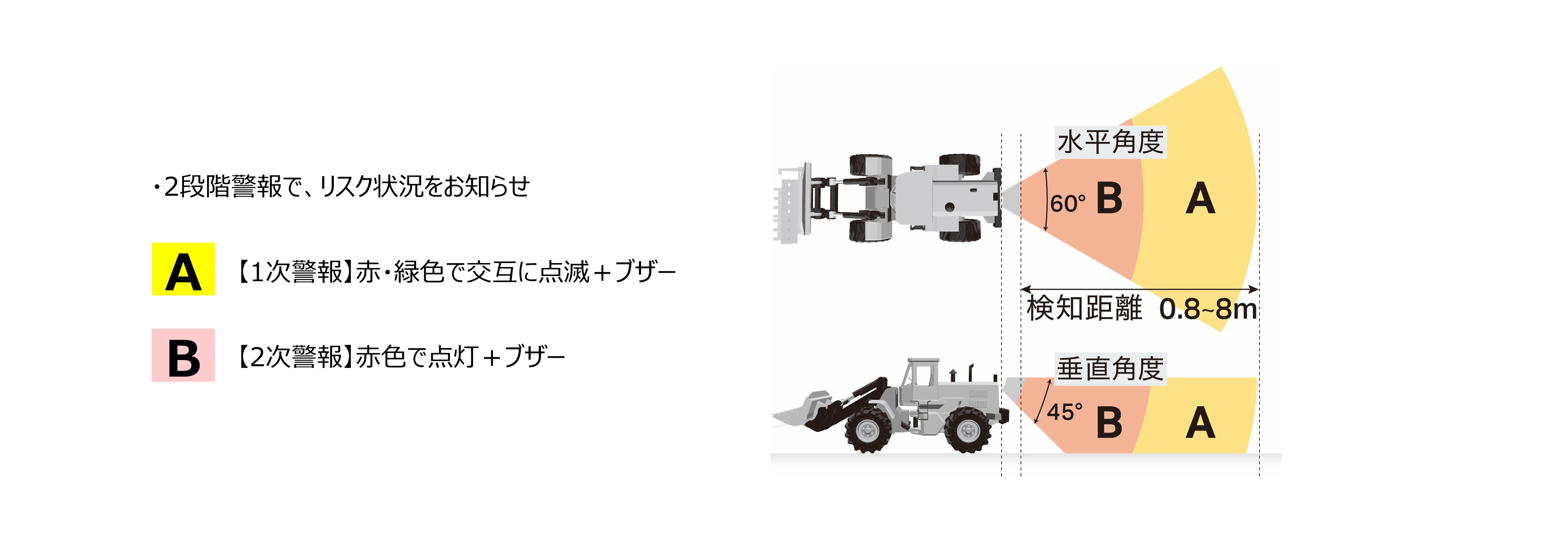 ・検知したい障害物へ反射材を貼り付けることにより、障害物と車両の接近時に警報を発します。