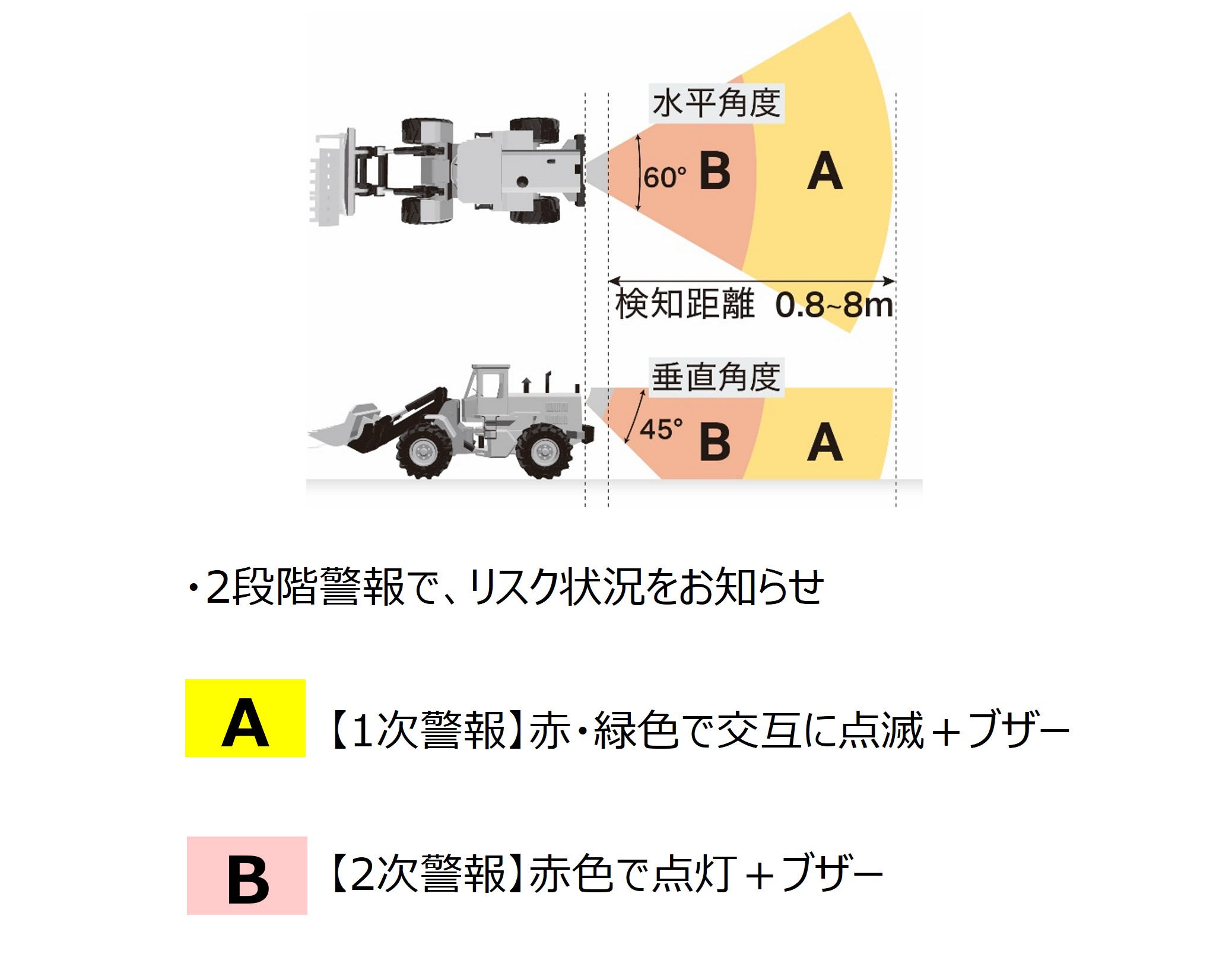・反射材(※)付き安全ベストを着用することにより、人と産業車両の接近時に警報を発します