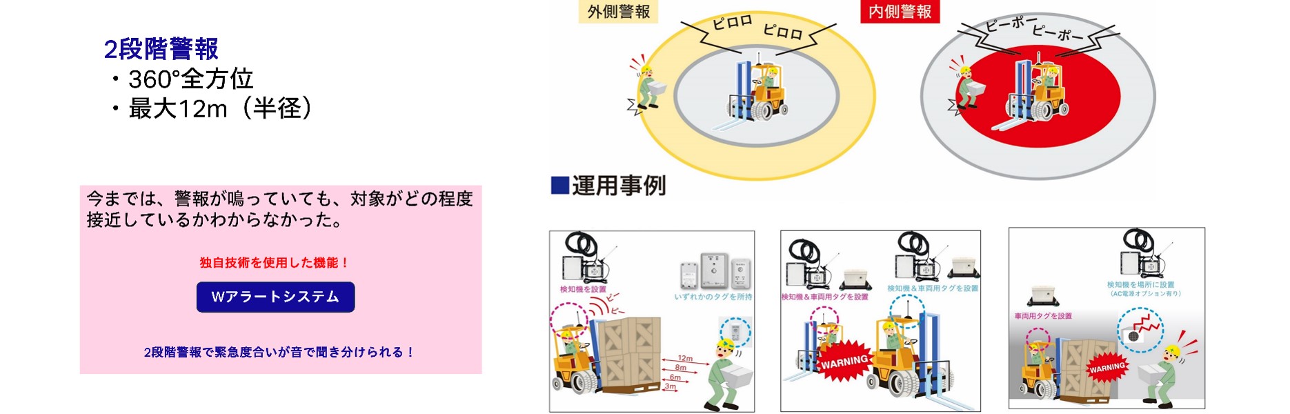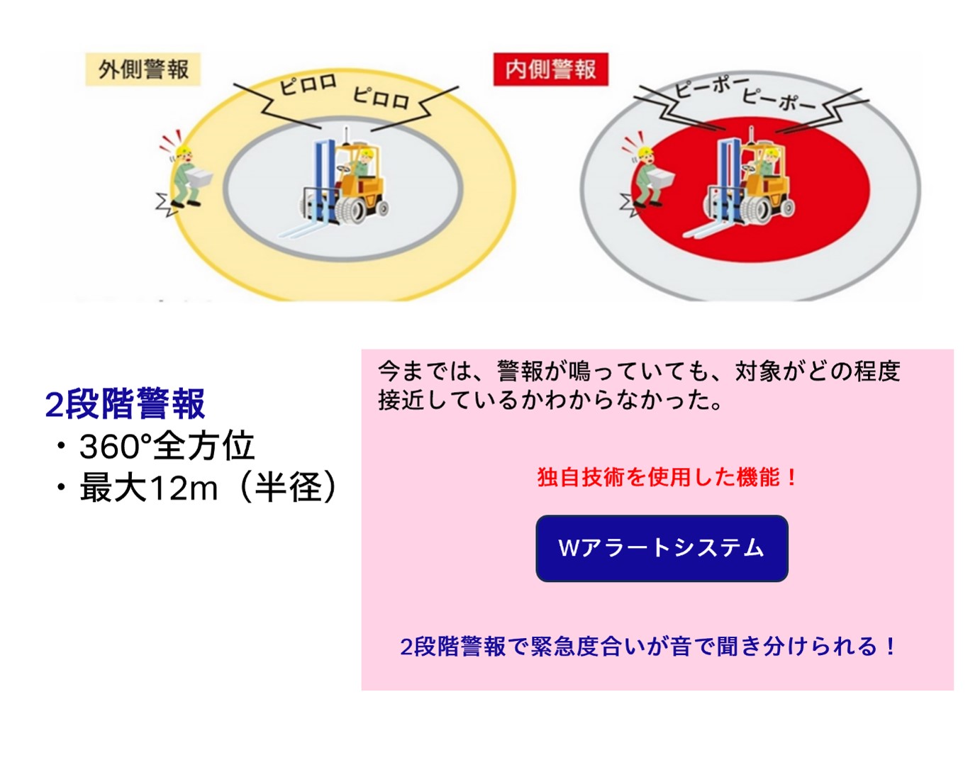 →警報が鳴っている間は、エリア内に作業者がいるので 、車両を停止してください。