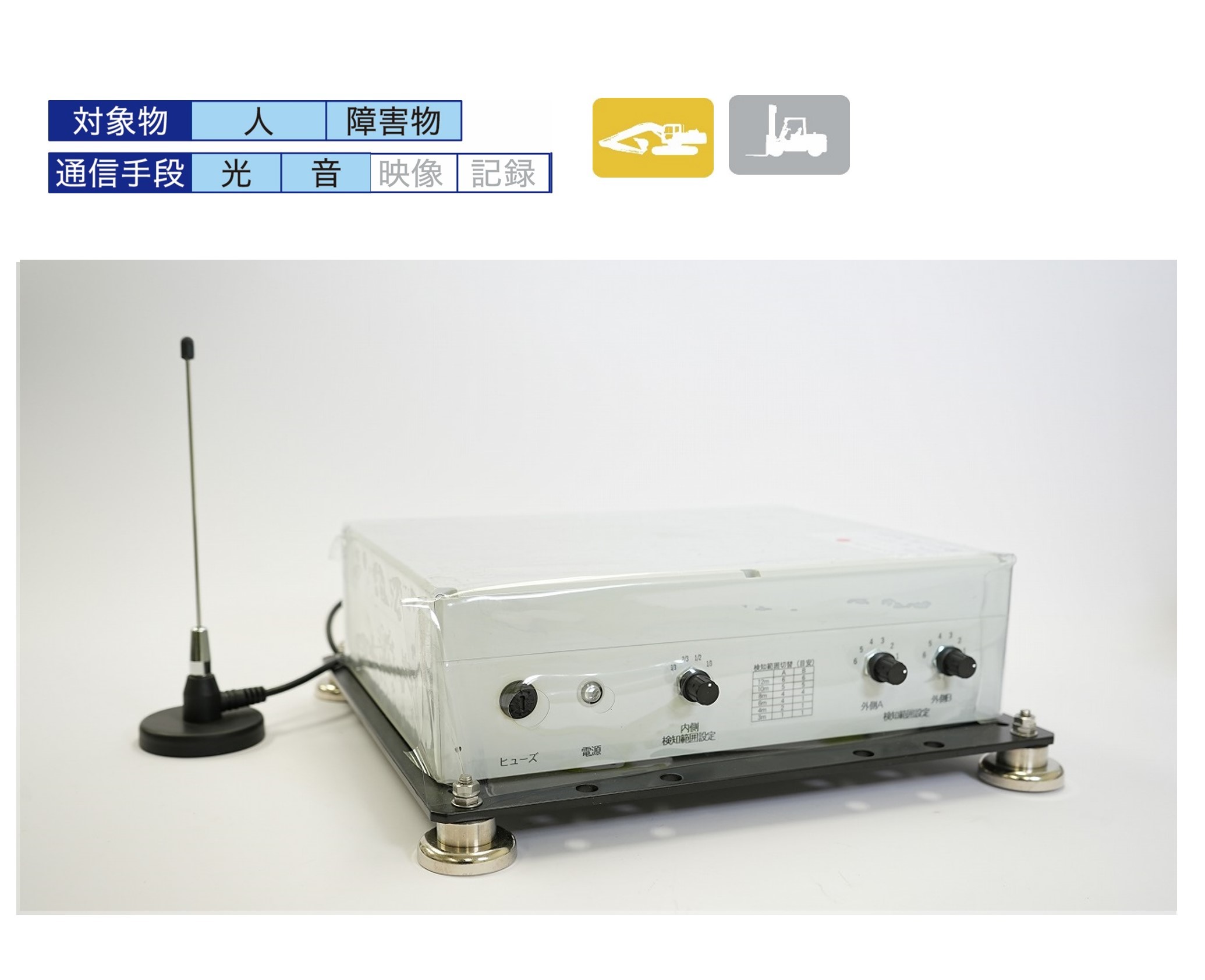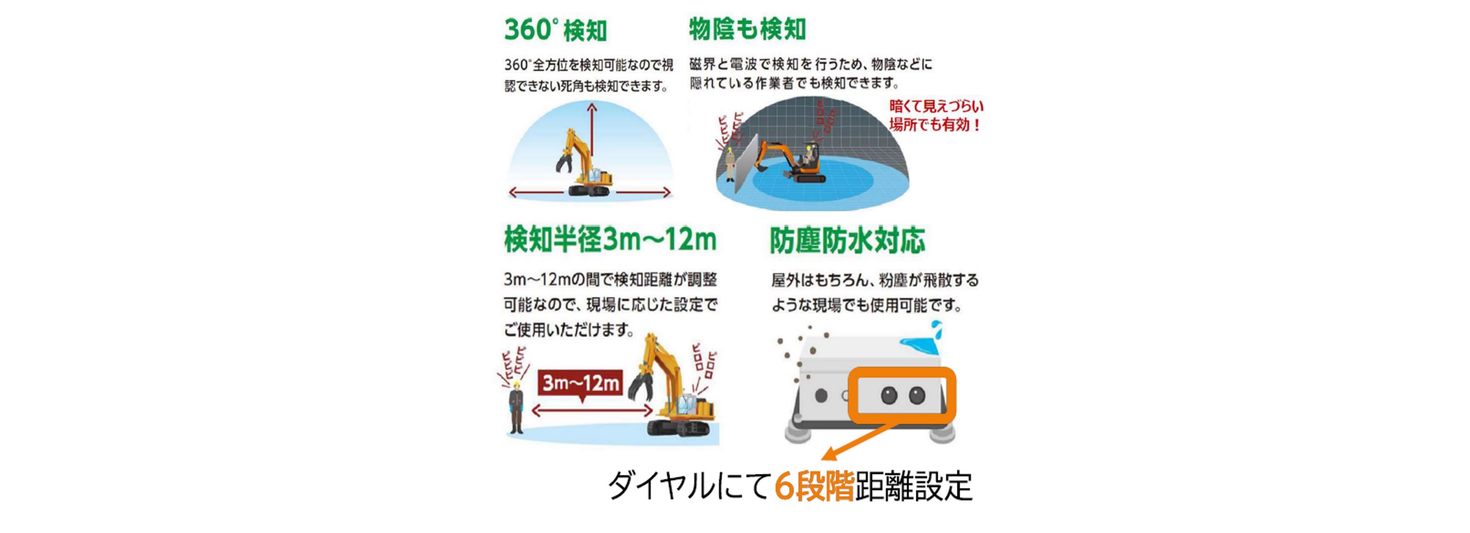 車両 ・・・検知範囲内にいる 作業者全員がエリア外に出るまでは、警報し続けます。