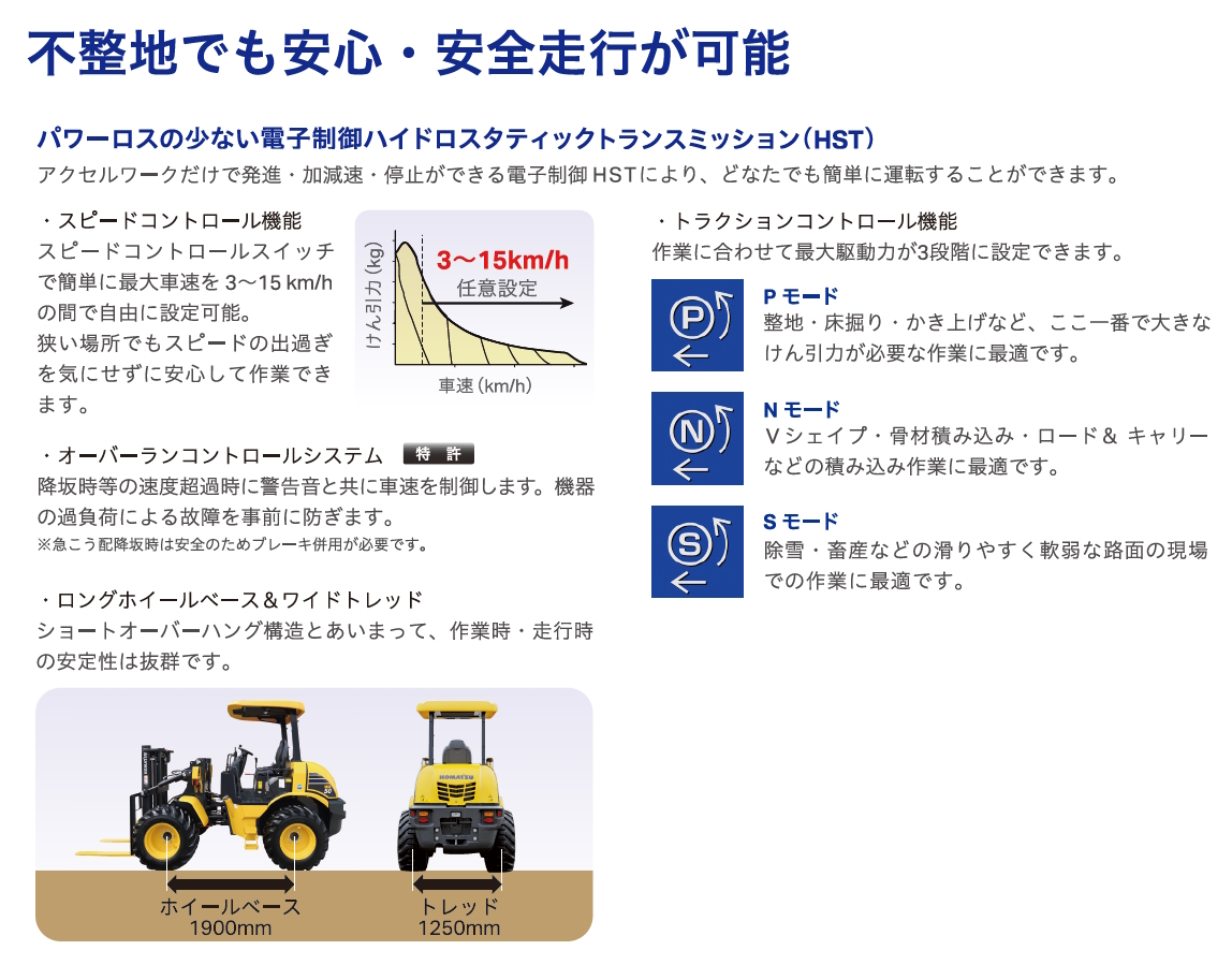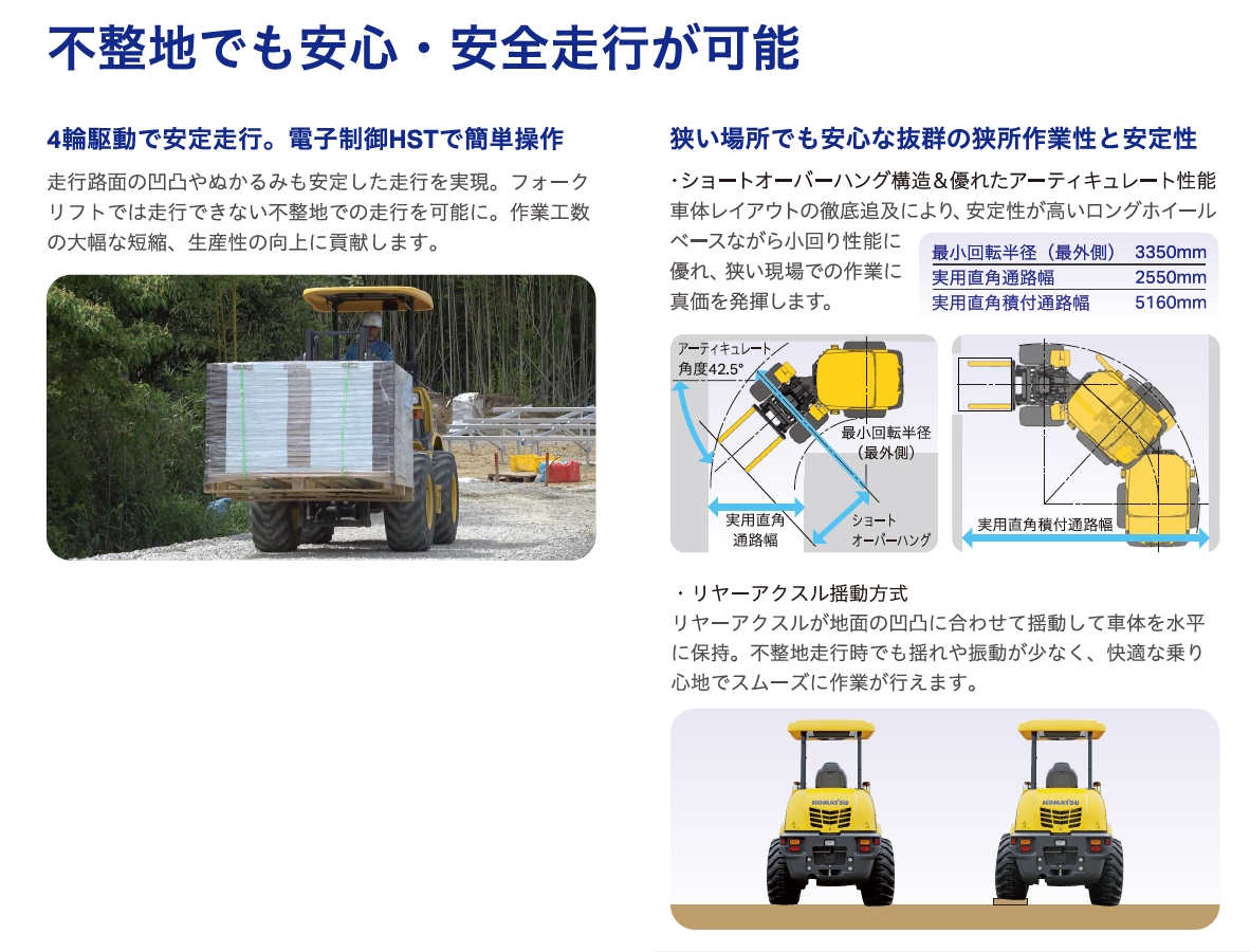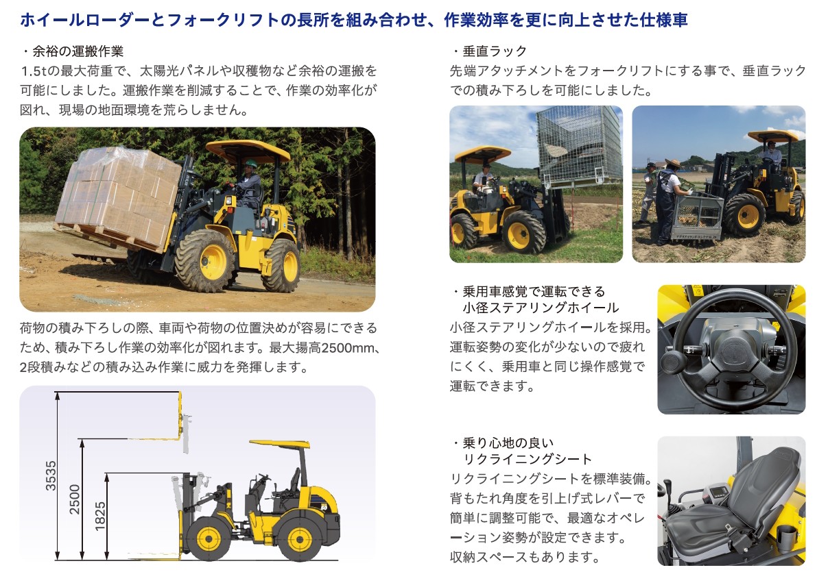 ホイールローダーとフォークリフトの長所を組み合わせ、作業効率を更に向上
