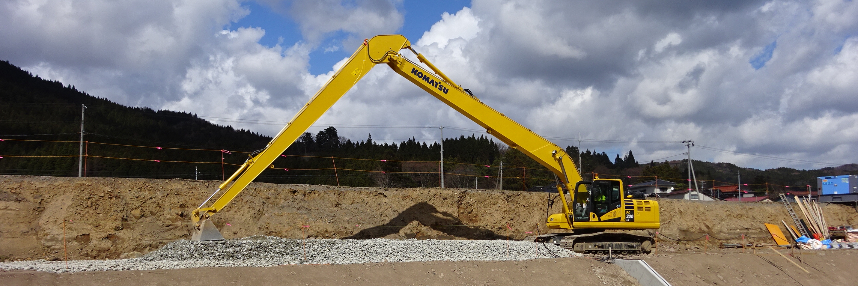 より深く・遠くへ。ワイドな作業範囲で、河川の改修から砂利採取まで幅広く対応。