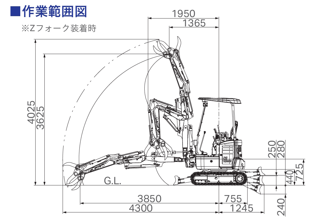 大きなリーチで余裕の作業範囲を確保