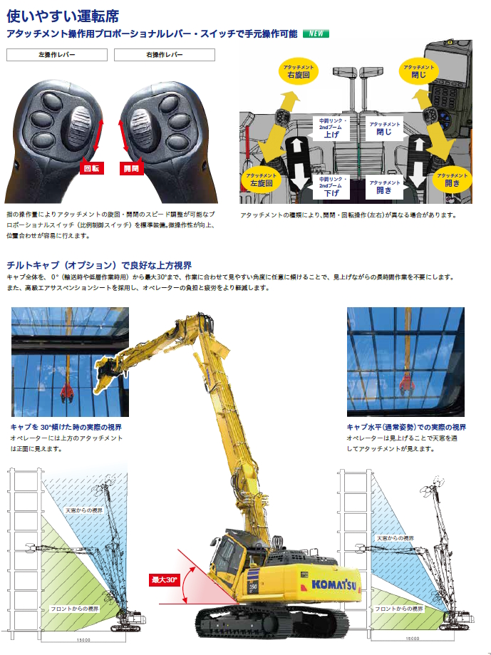 - アタッチメント操作用プロポーショナルレバー・スイッチで手元操作が可能。