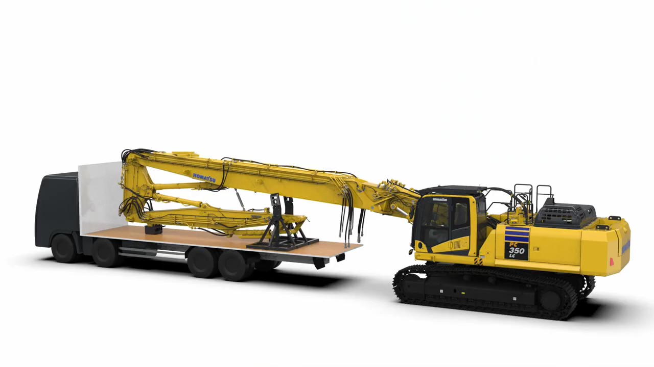 - 高層解体には「解体ロングフロント作業機」を、中層~基礎解体には「解体2ピースブーム作業機」に、現場でも容易に交換できます。