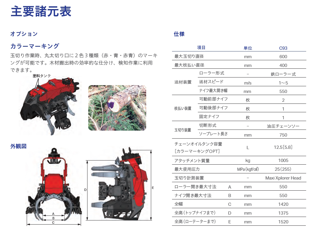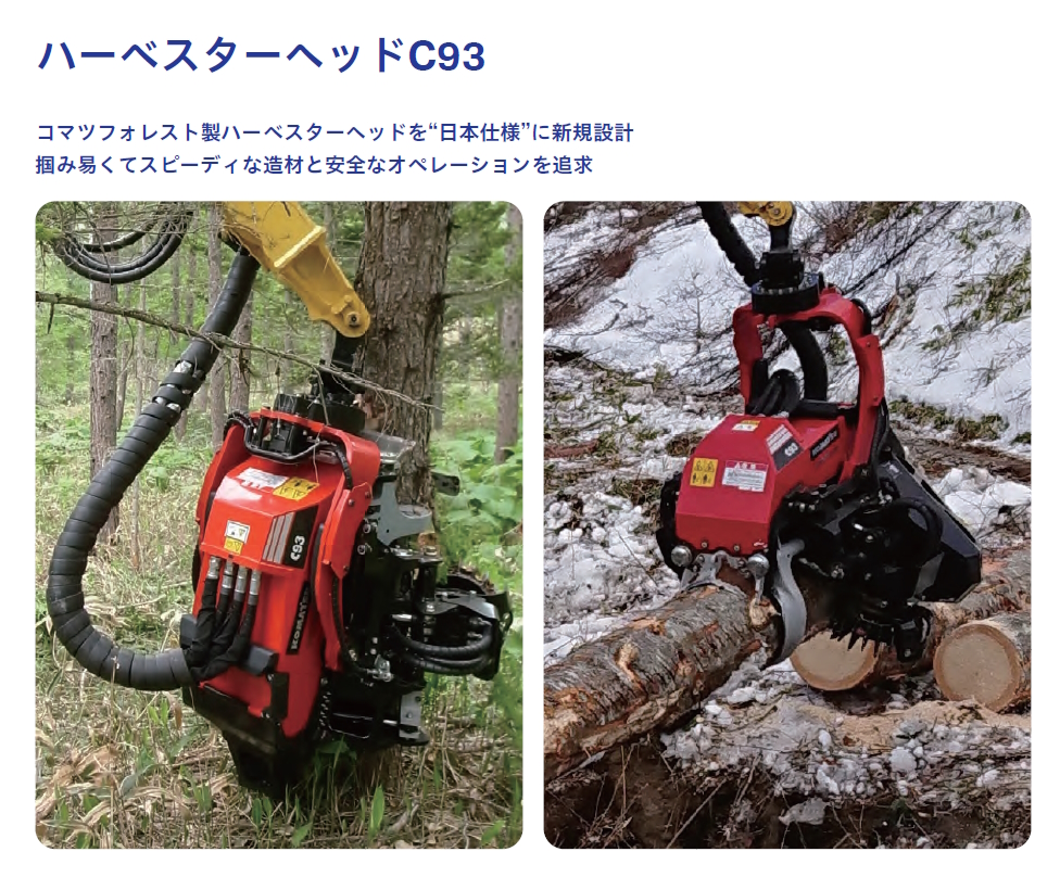 林業先進国のスウェーデンで生まれ世界各地の多くの林業現場で実績を積んだハーベスターヘッドⅭ93が、日本専用の特別な改良を施して国内導入。