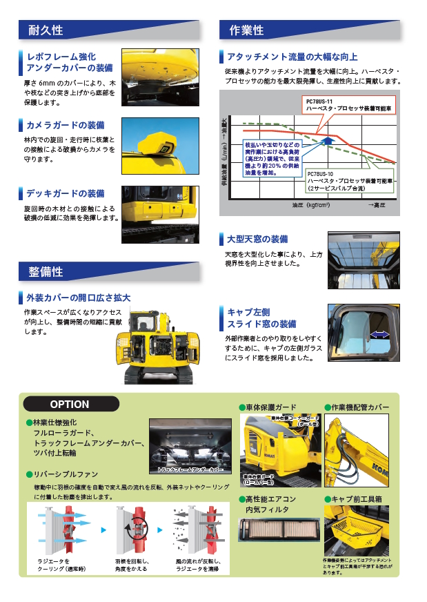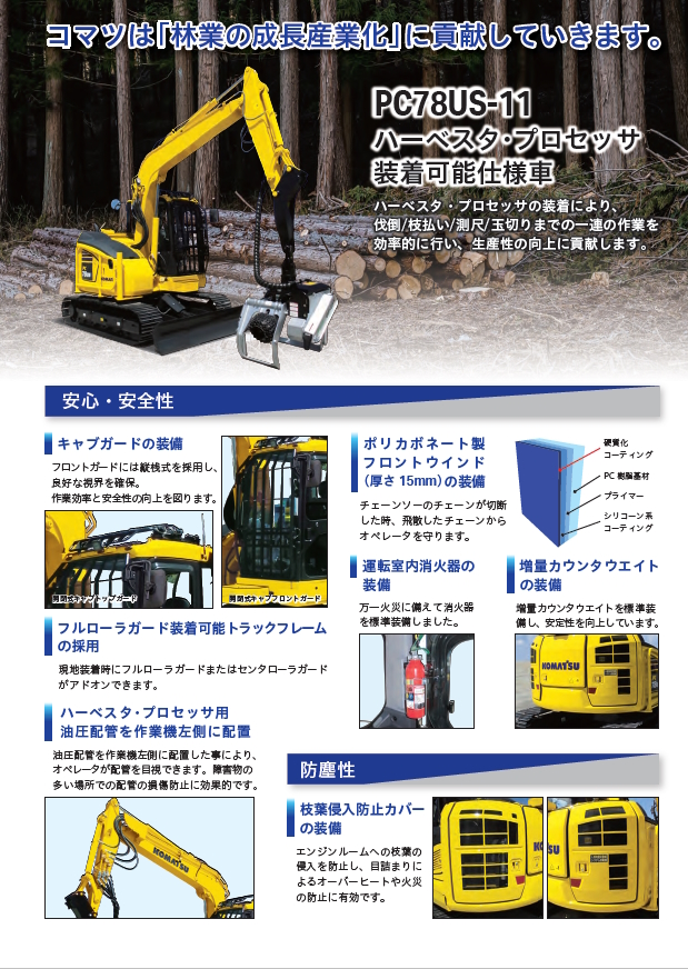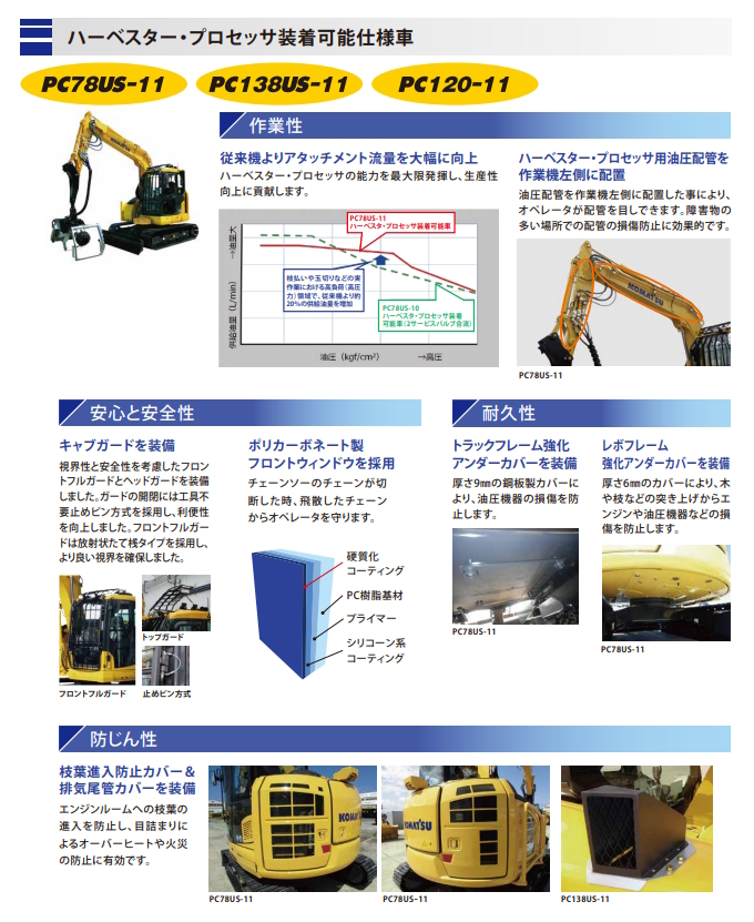PC78US-11/PC120-11/PC138US-11 ハーベスター・プロセッサー装着可能車