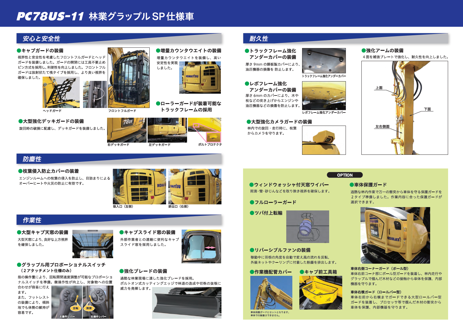 大型強化デッキガード 旋回時の破損に配慮し、デッキガードを装備しました。