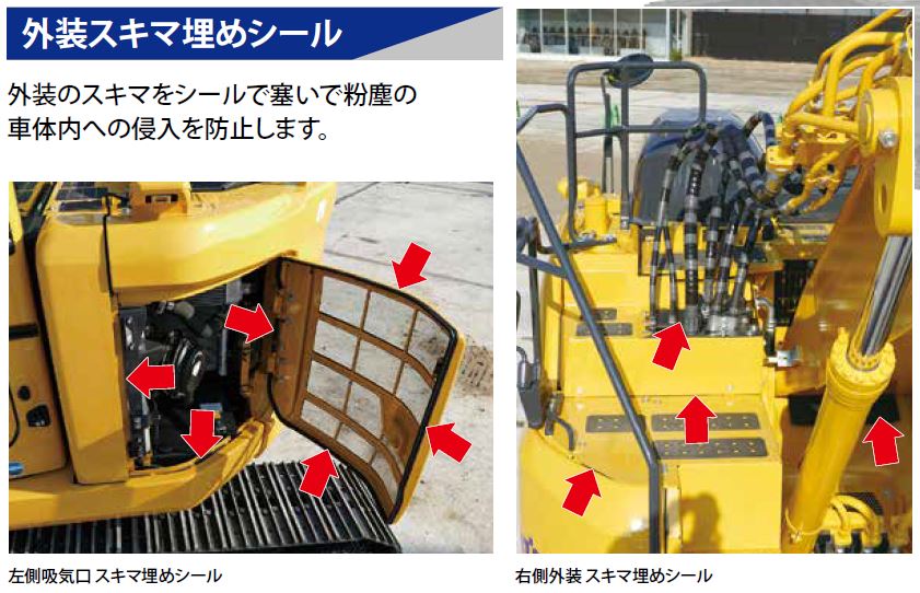 外装のスキマをシールで塞いで粉塵の車体内への侵入を防止します。