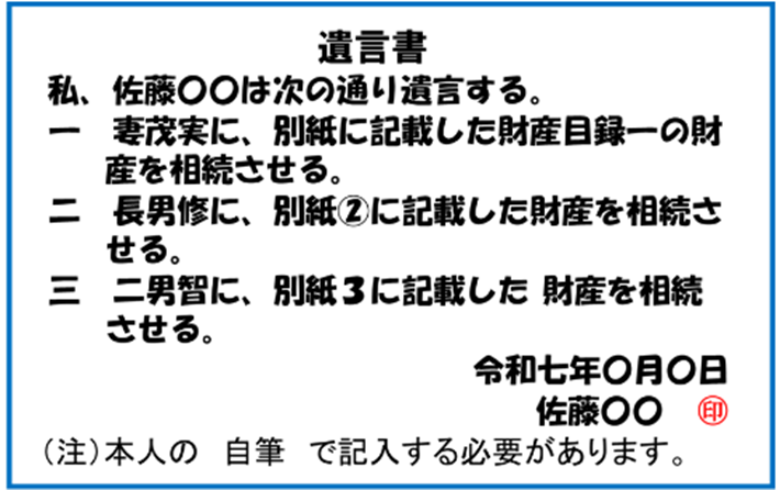 これまで自筆証書遺言は、全文を手書きで作成する必要がありましたが、改正により、財産目録については、手書きで作成しなくてもよいことになりました。