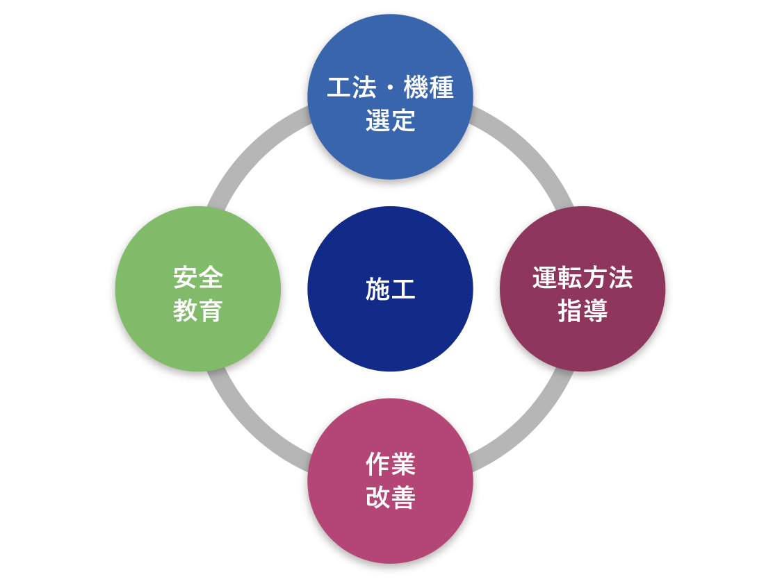 データの解析結果に基づいて、効率的な作業工程、現場レイアウト、機械の運転方法、保守アドバイスなど、お客様の課題に対するベストな解決策の提案を致します。